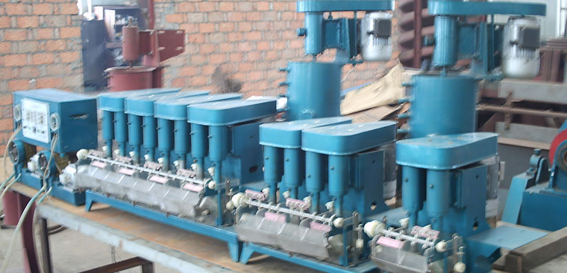 (1)、為(wéi)了調正槽內礦漿液麵及被(bèi)刮出泡沫層的厚度,利用兩槽壁板製成中間槽(cáo),其中安裝礦漿液麵(miàn)調節器,在槽內罩(zhào)蓋上(shàng)麵安裝孔板,用來防止礦漿的混亂運動對泡沫區的影響,同(tóng)時也可(kě)以防止脈石被機(jī)械帶到精礦中去。在槽體部(bù)置有襯板,防止磨損槽底,襯板可以更換,槽底外部置有排礦口,清洗(xǐ)時放水之(zhī)用。礦漿(jiāng)流經壁板上的溢流口進入中間槽和尾槽,中(zhōng)間槽的下部與槽壁下部(bù)罩(zhào)蓋的導管進(jìn)入下一個槽中,這樣可以繼續流經浮選(xuǎn)機的槽數全部,從給礦(kuàng)槽(cáo)流入,由(yóu)尾(wěi)槽的排(pái)礦口排出,槽體下部的前後置有進礦口,便於改變工藝流程。